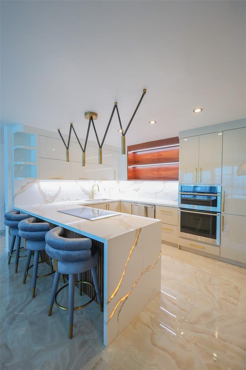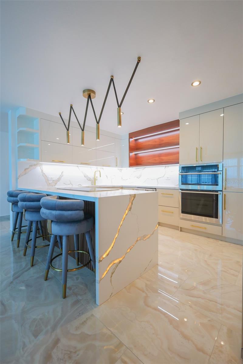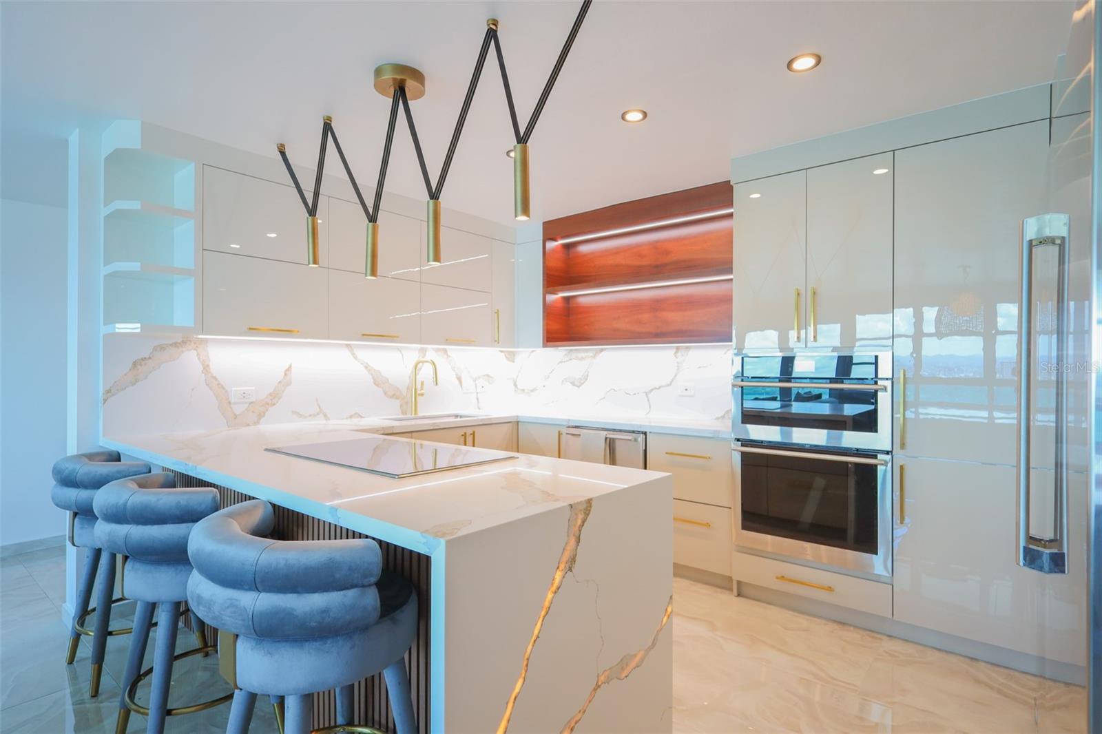 The kitchen stands as a true centerpiece, thoughtfully designed with sleek custom cabinetry and premium appliances, blending functionality with refined modern aesthetics. The residence is offered fully furnished in a curated modern minimalist luxury style.