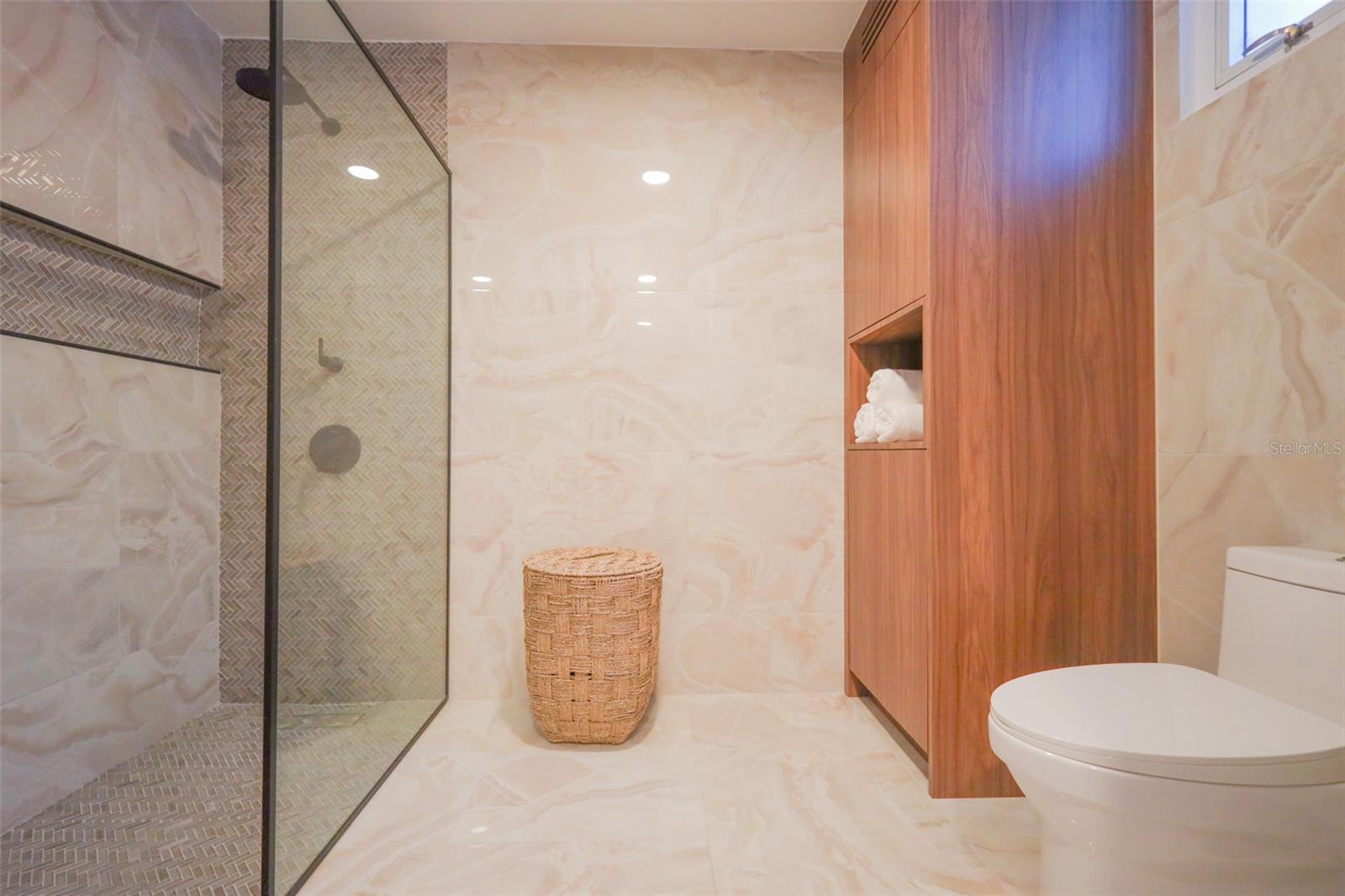 The spacious primary suite features a walk-in closet and a well-appointed en-suite bathroom, offering both privacy and comfort. Two additional bedrooms provide flexibility for guests, o family.