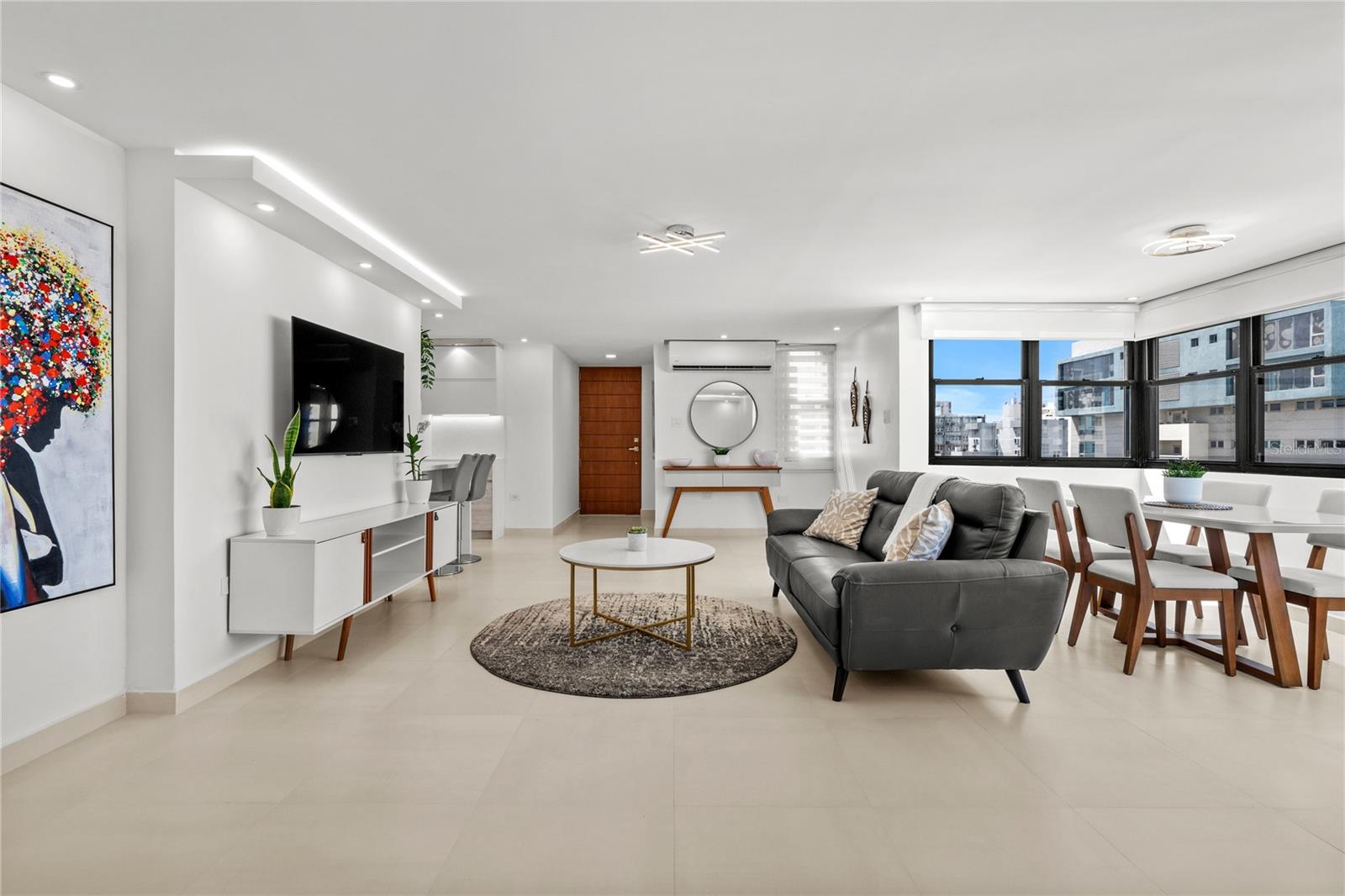Set high on the 11th floor of an exclusive boutique building in Condado, this northeast corner unit with turquoise ocean views, is nothing short of a masterpiece in modern renovation. From the moment you cross the threshold, you're greeted with an ethereal sense of calm--clean lines, pristine surfaces. This is not just a renovation--it's a full reimagination. Every surface, every finish, every detail has been considered and elevated.