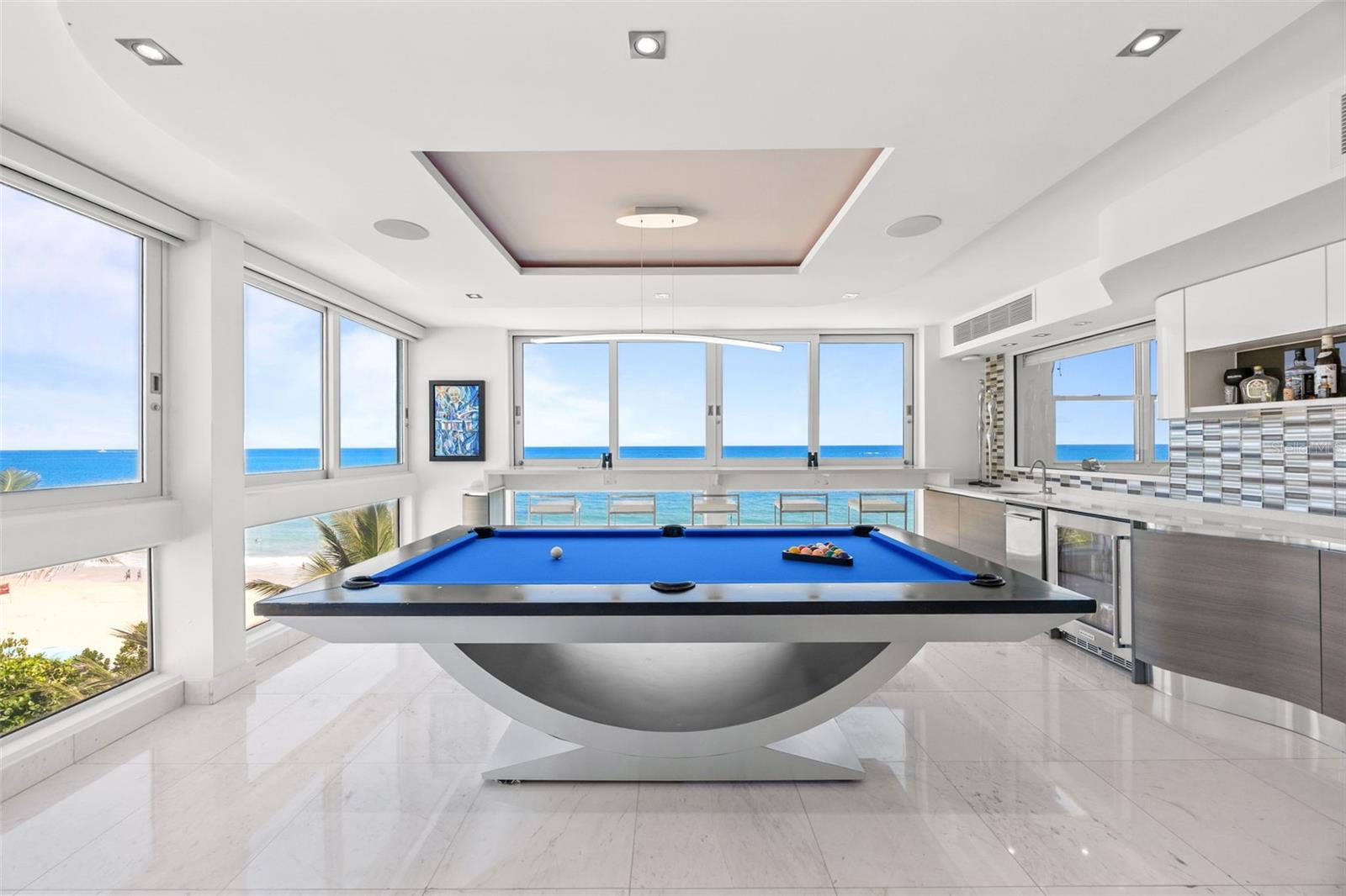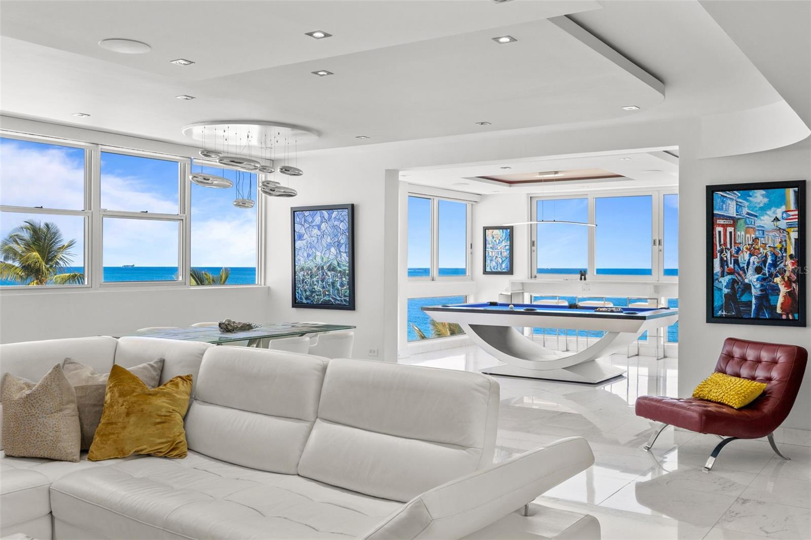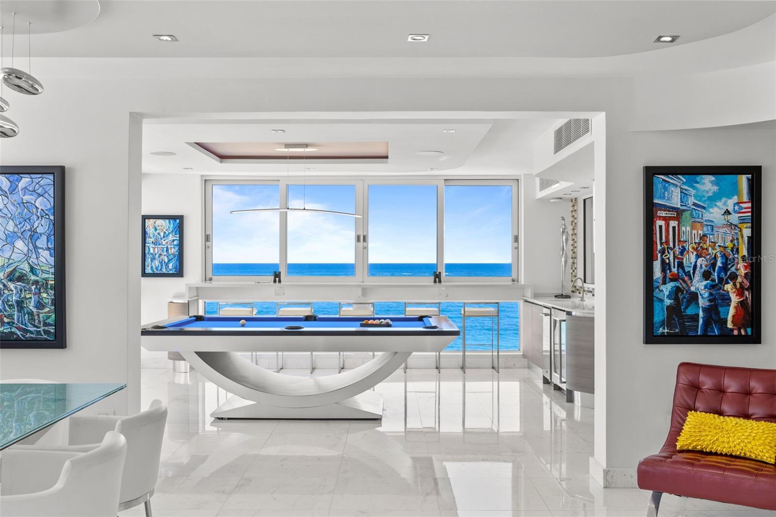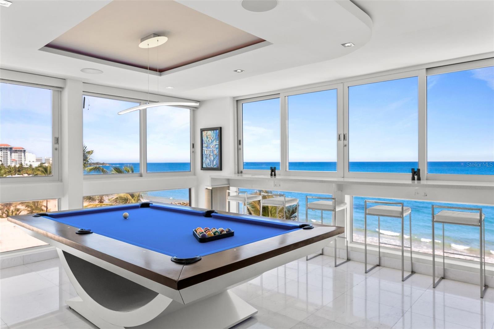 Experience oceanfront living at 1315 Ashford Avenue, Residence 501, in the beautiful Acquamarina Condominium in Condado, San Juan. This hard-to-find residence offers 2,281 square feet of interior space with panoramic ocean views from its main living areas and oversized primary suite. The three-bedroom, three-bathroom layout is designed to maximize light, views, and functionality. A spacious, integrated living and dining area faces the water, creating a seamless setting for both everyday living and entertaining. Hurricane impact glass windows frame the coastline and open to capture natural light and cross-ventilation, enhancing the connection between the interior and the shoreline. The modern Italian kitchen is appointed with top-of-the-line appliances including a full size wine cooler providing a streamlined workspace that complements the residence's contemporary design. Elegant marble floors run throughout the home. The primary suite is positioned directly on the ocean, offering a true "on the water" experience. Residence 501 includes three covered parking spaces. Acquamarina is a boutique condominium with fewer than 50 residences, offering a private environment along Ashford Avenue. Amenities include an oceanfront pool, direct beach access, and a fully equipped gym. A full power generator and water cistern support uninterrupted building operations. Security features include a biometric access system, 24/7 security personnel, on-site management, and ample visitor parking. Situated in the heart of Condado, this property offers a balanced coastal-urban lifestyle. The building is just a few steps to renowned restaurants, luxury hotels, high-end retail, and a variety of entertainment and service options along Ashford Avenue and the surrounding streets.