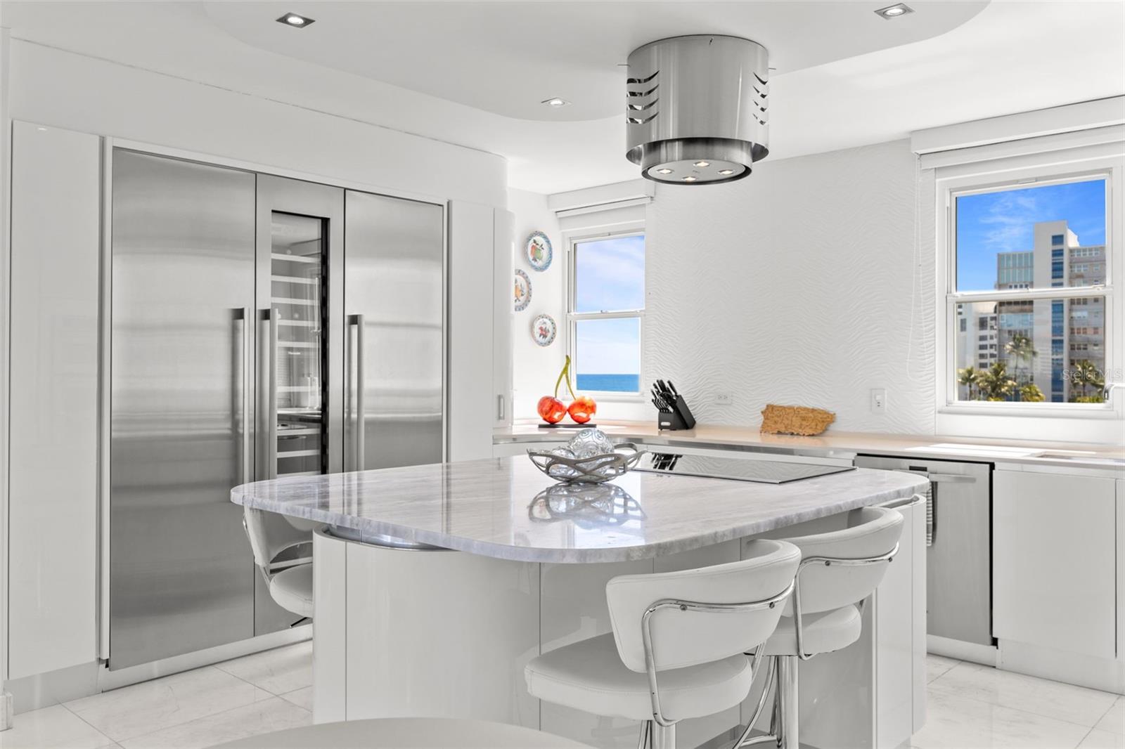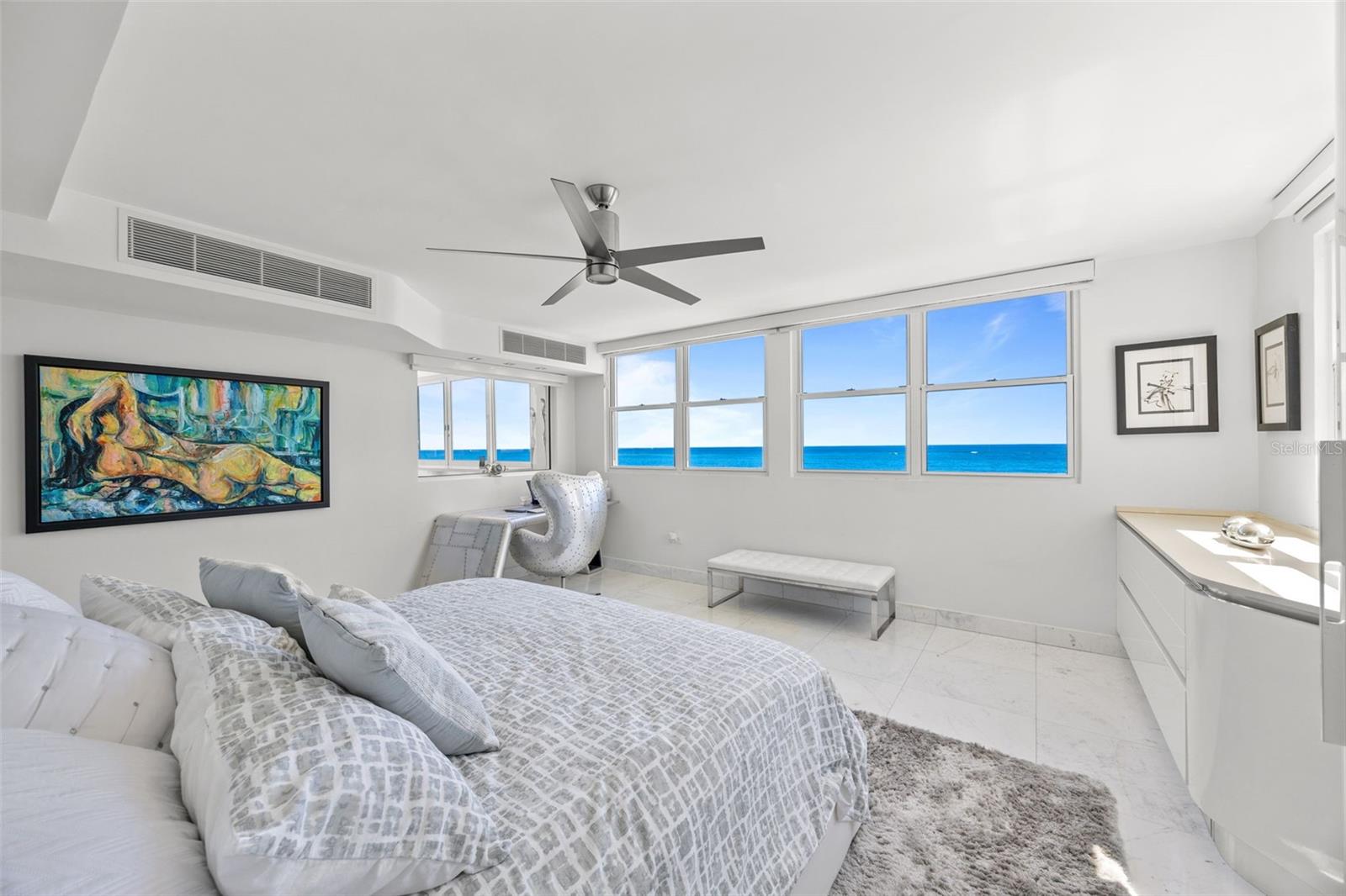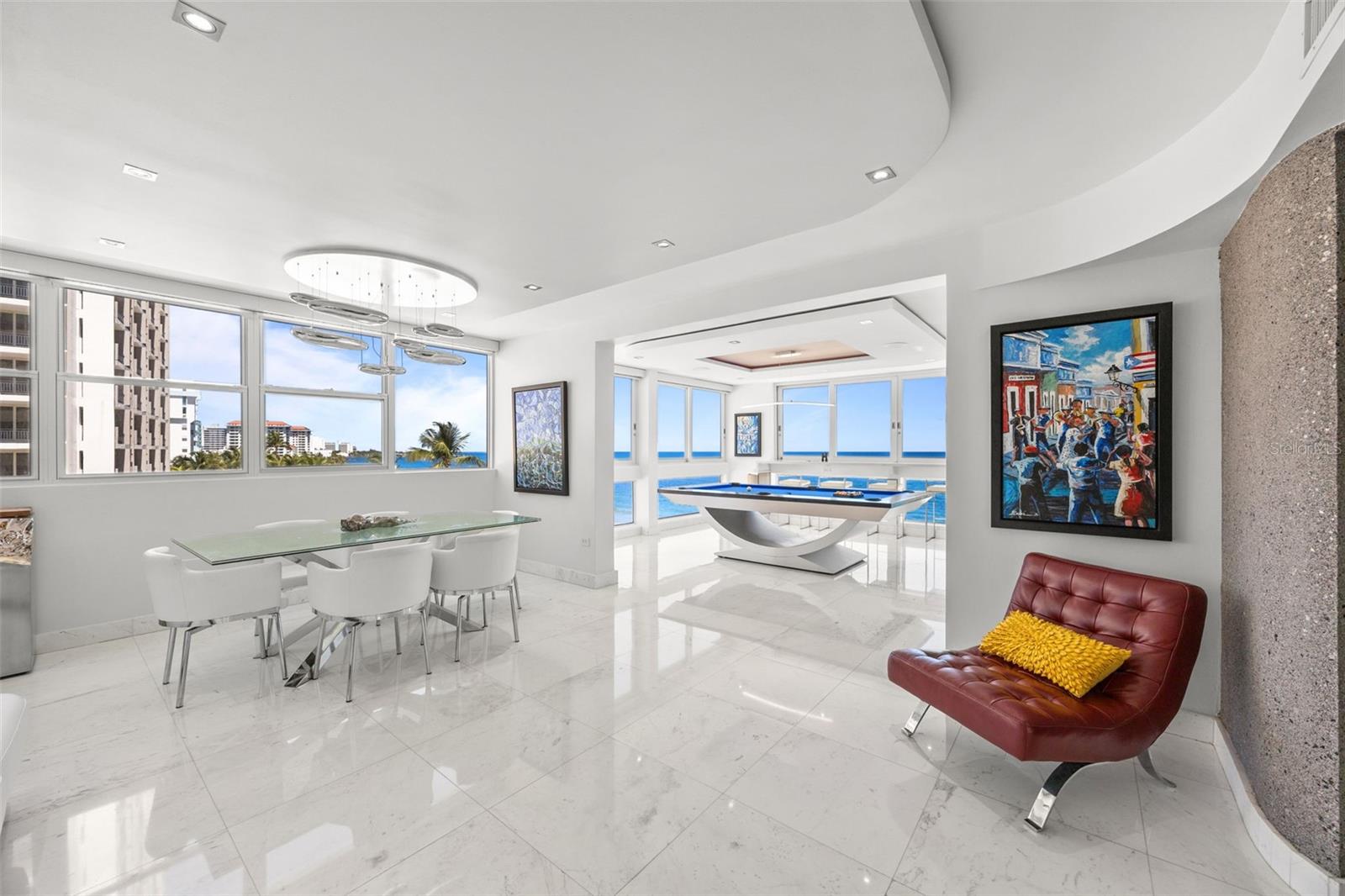 Experience oceanfront living at 1315 Ashford Avenue, Residence 501, in the beautiful Acquamarina Condominium in Condado, San Juan. This hard-to-find residence offers 2,281 square feet of interior space with panoramic ocean views from its main living areas and oversized primary suite. The three-bedroom, three-bathroom layout is designed to maximize light, views, and functionality. A spacious, integrated living and dining area faces the water, creating a seamless setting for both everyday living and entertaining. Hurricane impact glass windows frame the coastline and open to capture natural light and cross-ventilation, enhancing the connection between the interior and the shoreline. The modern Italian kitchen is appointed with top-of-the-line appliances including a full size wine cooler providing a streamlined workspace that complements the residence's contemporary design. Elegant marble floors run throughout the home. The primary suite is positioned directly on the ocean, offering a true "on the water" experience. Residence 501 includes three covered parking spaces. Acquamarina is a boutique condominium with fewer than 50 residences, offering a private environment along Ashford Avenue. Amenities include an oceanfront pool, direct beach access, and a fully equipped gym. A full power generator and water cistern support uninterrupted building operations. Security features include a biometric access system, 24/7 security personnel, on-site management, and ample visitor parking. Situated in the heart of Condado, this property offers a balanced coastal-urban lifestyle. The building is just a few steps to renowned restaurants, luxury hotels, high-end retail, and a variety of entertainment and service options along Ashford Avenue and the surrounding streets.