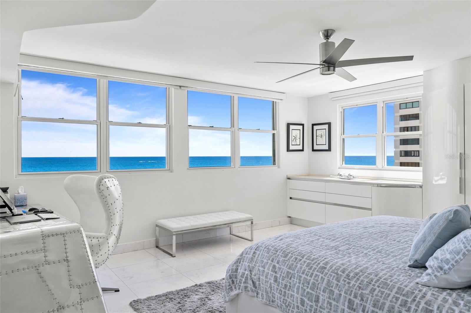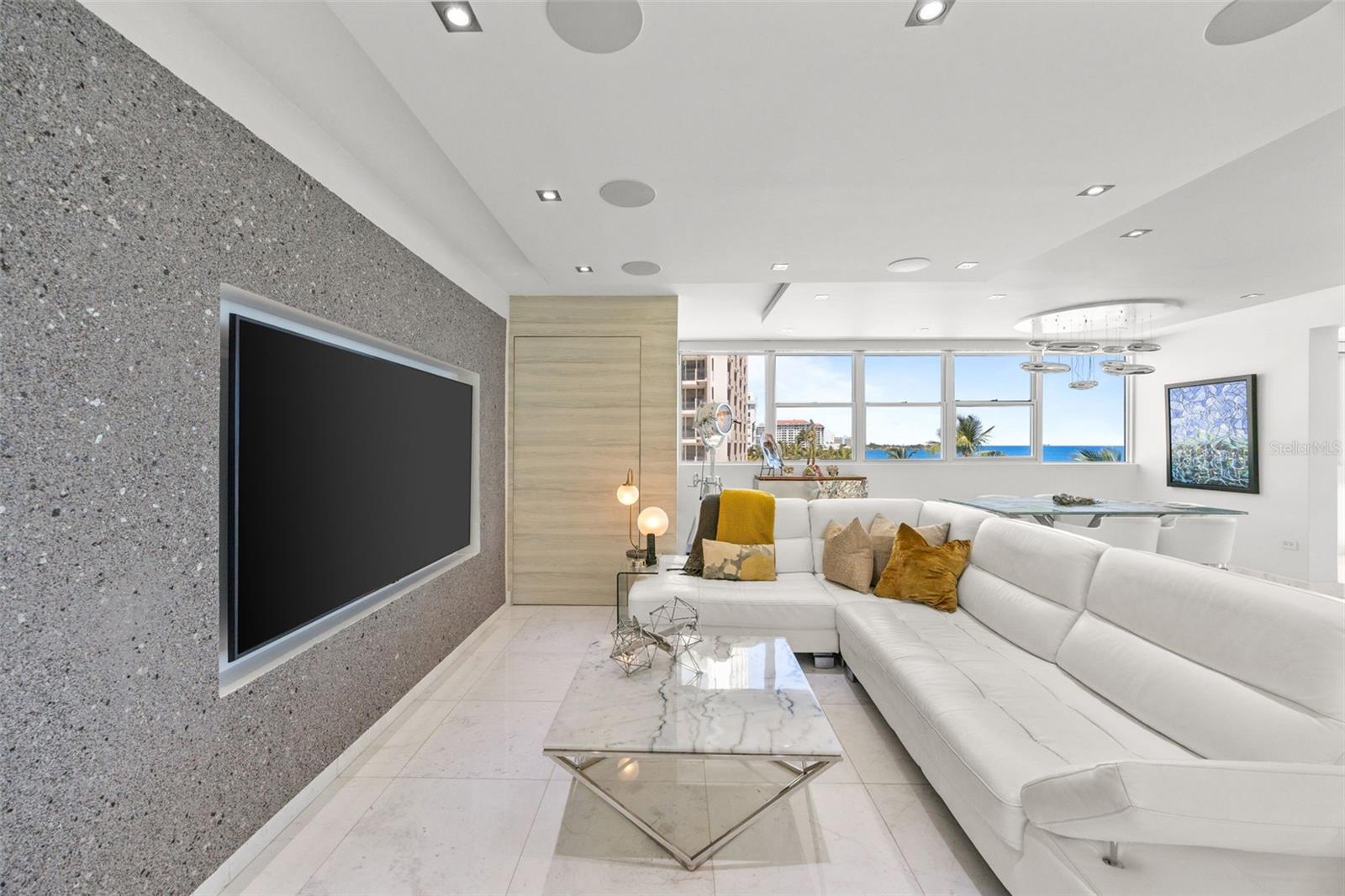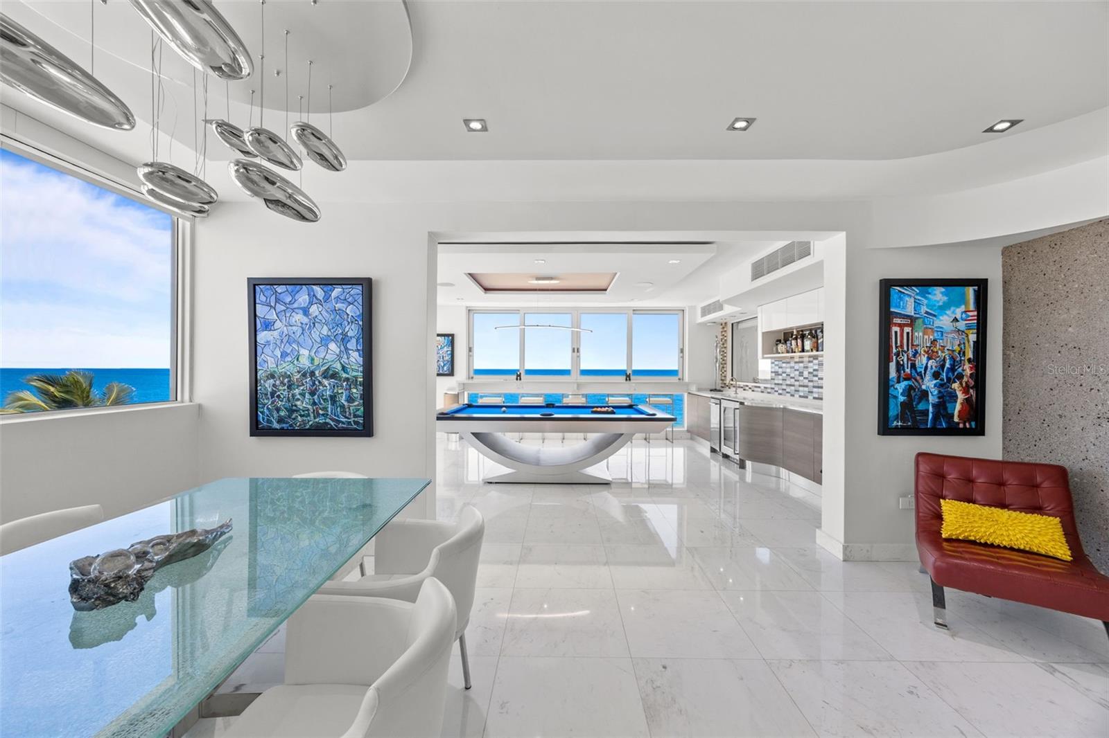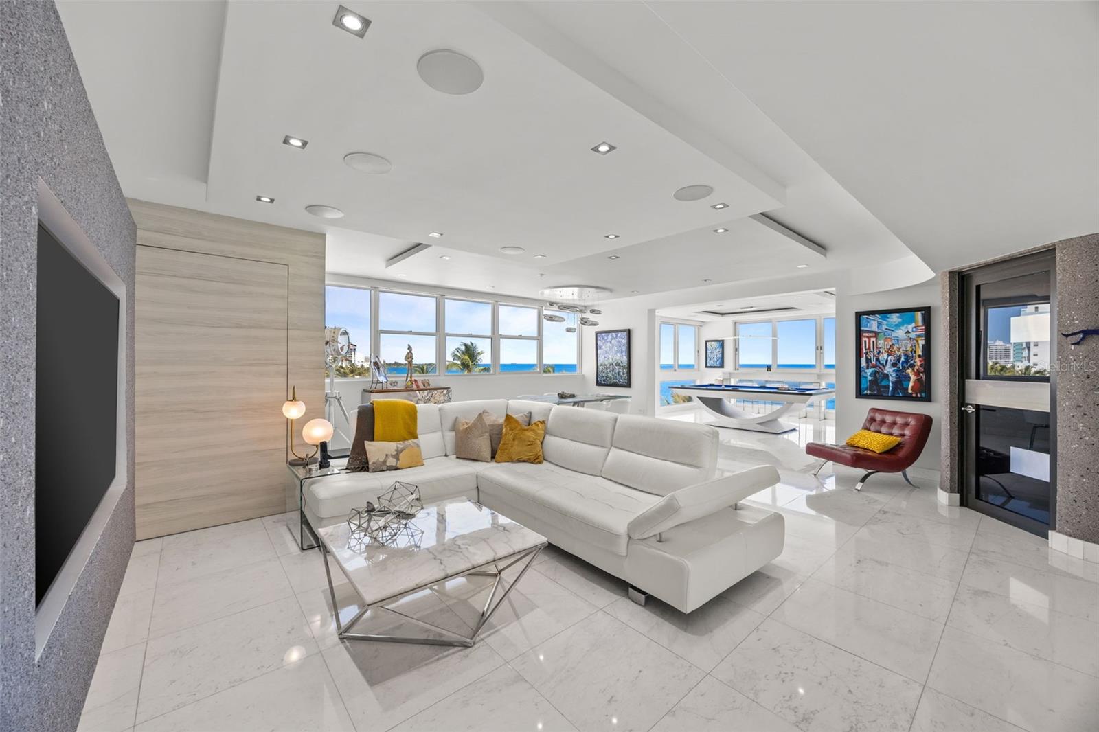 Experience oceanfront living at 1315 Ashford Avenue, Residence 501, in the beautiful Acquamarina Condominium in Condado, San Juan. This hard-to-find residence offers 2,281 square feet of interior space with panoramic ocean views from its main living areas and oversized primary suite. The three-bedroom, three-bathroom layout is designed to maximize light, views, and functionality. A spacious, integrated living and dining area faces the water, creating a seamless setting for both everyday living and entertaining. Hurricane impact glass windows frame the coastline and open to capture natural light and cross-ventilation, enhancing the connection between the interior and the shoreline. The modern Italian kitchen is appointed with top-of-the-line appliances including a full size wine cooler providing a streamlined workspace that complements the residence's contemporary design. Elegant marble floors run throughout the home. The primary suite is positioned directly on the ocean, offering a true "on the water" experience. Residence 501 includes three covered parking spaces. Acquamarina is a boutique condominium with fewer than 50 residences, offering a private environment along Ashford Avenue. Amenities include an oceanfront pool, direct beach access, and a fully equipped gym. A full power generator and water cistern support uninterrupted building operations. Security features include a biometric access system, 24/7 security personnel, on-site management, and ample visitor parking. Situated in the heart of Condado, this property offers a balanced coastal-urban lifestyle. The building is just a few steps to renowned restaurants, luxury hotels, high-end retail, and a variety of entertainment and service options along Ashford Avenue and the surrounding streets.