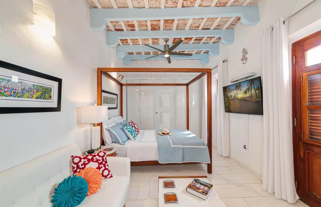 Azulejos 12: Historic Residence with Ocean View Balcony - Newly renovated, all brick, high ceilings, wooden beams, and direct access to the interior patio. 2 bedroom / 1 1/2 bathroom. The apartment has wide-open spaces that flow into a balcony that features views of both the Atlantic Ocean and the SJ Bay. The apartment sits in the second story of a building on the crest of the breezy hill. Its location is privilaged within Old San Juan. Coordinates: (18.4675025, -66.11679665).