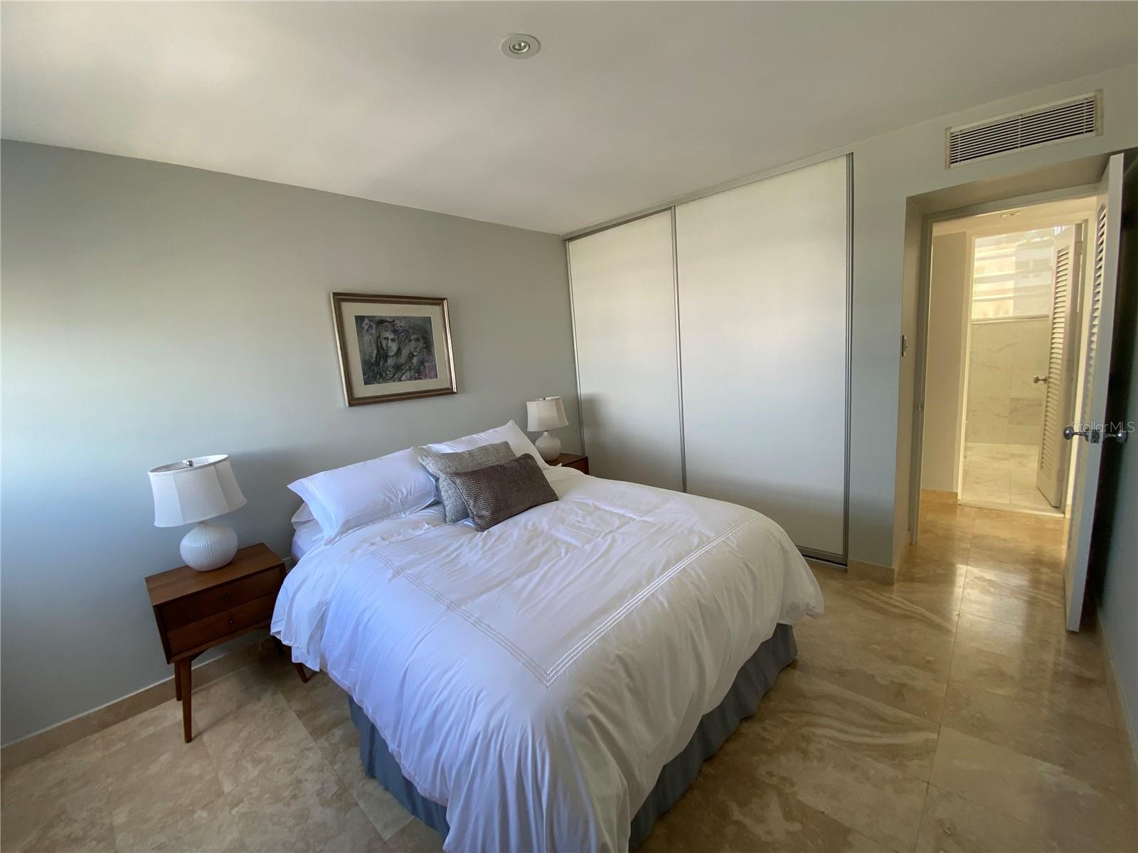 Recently remodeled apartment in Condado Real 1700 at McLeary Avenue Corner of Kings Court Street, with perfect location, one of the most beautiful residential condominium in San Juan, Ocean Park. Exquisite design. Approx. 1,336.62 square feet. Residences are bathed in natural light through floor-to-ceiling windows frame panoramic ocean views. This turnkey property boasts travertine marble floors throughout, marble counter tops and backsplash with customized Scavolini kitchen cabinets made in Italy. Two bedrooms, the master bedroom with walk-in closet with built-in closet partitions, 2 full bathrooms, 1 independent parking space. Amenities in building include pool, 24hr security, fiber optic internet and full power generator coming in september 2023. Walk everywhere from the apartment, to the best beach in Condado, play beach tennis, volleyball, kite surf, paddle board, to your favorite hotels, restaurants, shopping, super market and entertainment; & much more…